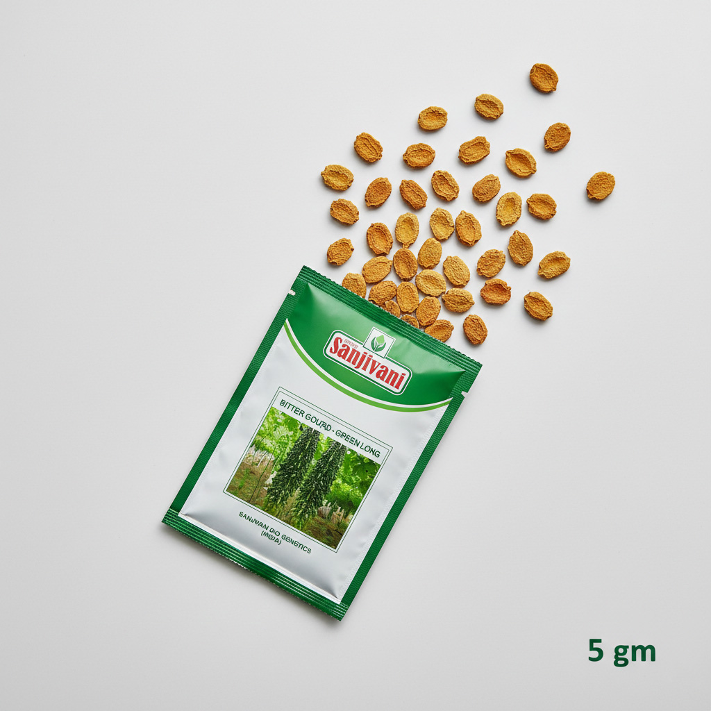 Take control of your health by growing fresh, pesticide-free bitter gourd right at home. Shree Sanjivani Bitter Gourd (Green Long) seeds are premium-grade hybrids specifically developed for high productivity in small spaces. This 5gm Kitchen Garden Packet (KGP) is perfect for vertical gardening on terraces or in backyard kitchen gardens.