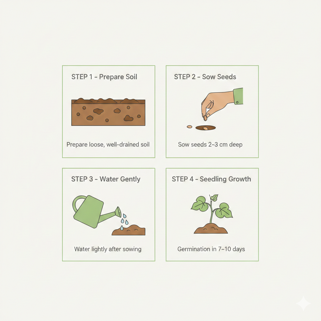 Sowing Tip: For faster germination, soak the seeds in water for 12 hours before planting.
